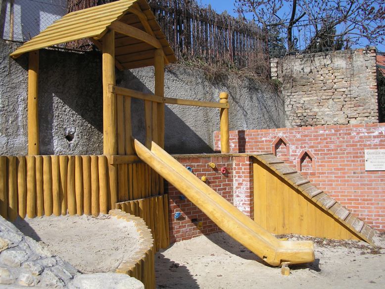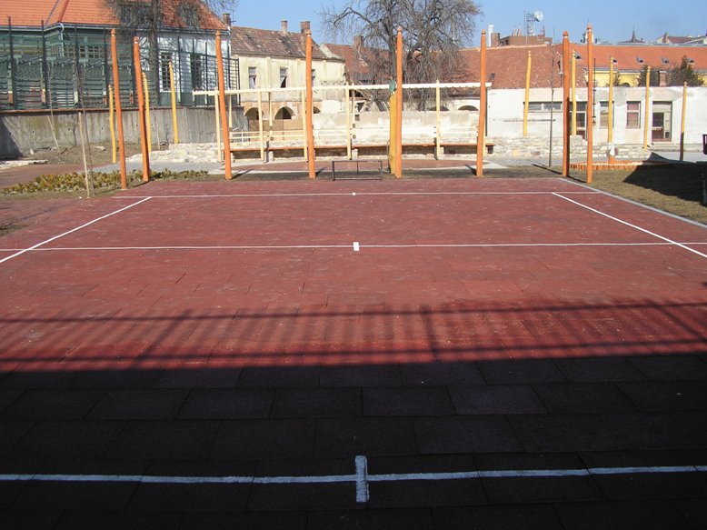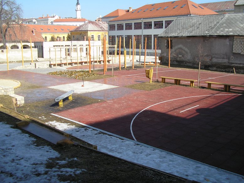 Összesen 16 db kép. A képek letölthetőek (külön böngésző-ablakban megnyithatóak). Egy nemes szívvel nyújtott adománynak köszönhetően kezdődött meg 2005-ben az 1970-es években épített felső kosárlabda-pályarész rendbetétele. Ezt a területet a Gizella-parknak neveztük el az adományozó Kováts Anna néni kérésére (az ő nagynénje, Vathy Gizella emlékére); felavatása/szentelése a 2005. szeptemberi évnyitónk ünnepi része volt. Itt egy nagyobb és egy kisebb gumiőrleményes burkolatú sportpálya, díszburkolattal ellátott rendezvénytér, pergolák és játszótér kapott helyet több fával, füvesítéssel. A játszó-park tervezője a Pagony Táj és Kertépítész Iroda (Budapest). Kivitelezők a Baumeister Általános Építő és Szolgáltató Kft. (Veszprém) és az Ilona-malom Műhely Bt. (Kapolcs), lebonyolító az Alf-O Mérnökiroda Kft. (Veszprém).  1. kép (JPEG - 106,8 kiB) |  2. kép (JPEG - 106,4 kiB) |  3. kép (JPEG - 113,9 kiB) |  4. kép (JPEG - 121,6 kiB) |  5. kép (JPEG - 117,7 kiB) |  6. kép (JPEG - 123,3 kiB) |  7. kép (JPEG - 118,6 kiB) |  8. kép (JPEG - 119,1 kiB) |  9. kép (JPEG - 125,8 kiB) |  10. kép (JPEG - 114,2 kiB) |  11. kép (JPEG - 108,5 kiB) |  12. kép (JPEG - 116,0 kiB) |  13. kép (JPEG - 122,4 kiB) |  14. kép (JPEG - 101,4 kiB) |  15. kép (JPEG - 105,3 kiB) |  16. kép (JPEG - 136,2 kiB) |