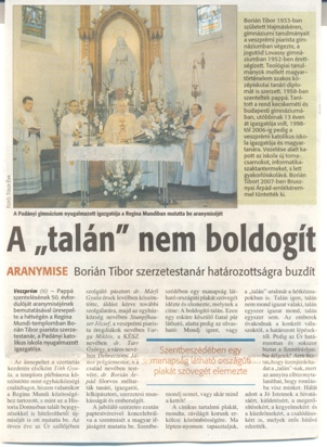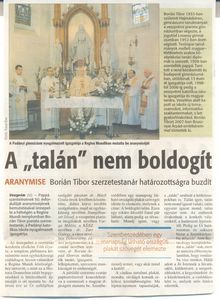 Újságcikk Borián Tibor Sch. P. atya aranymiséjéről