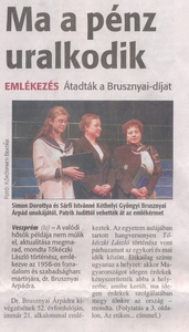 Brusznyai ÁrpádSimon DorottyaA Brusznyai Árpád Alapítvány Kuratóriuma 2010 januárjában is jutalmazni kívánt egy ma is tanító veszprémi általános- vagy középiskolai tanárt, aki az örök erkölcsi-művészi értékek megbecsülésére nevelte tanítványait, valamint egy végzős középiskolás diákot, aki az iskolai élet valamely területén kiemelkedő teljesítményt nyújtva példaként állítható diáktársai elé.