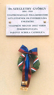 A jeles veszprémi polgármester tiszteletére a Padányi-iskola Szeglethy utcai homlokzatára emléktábla került.
