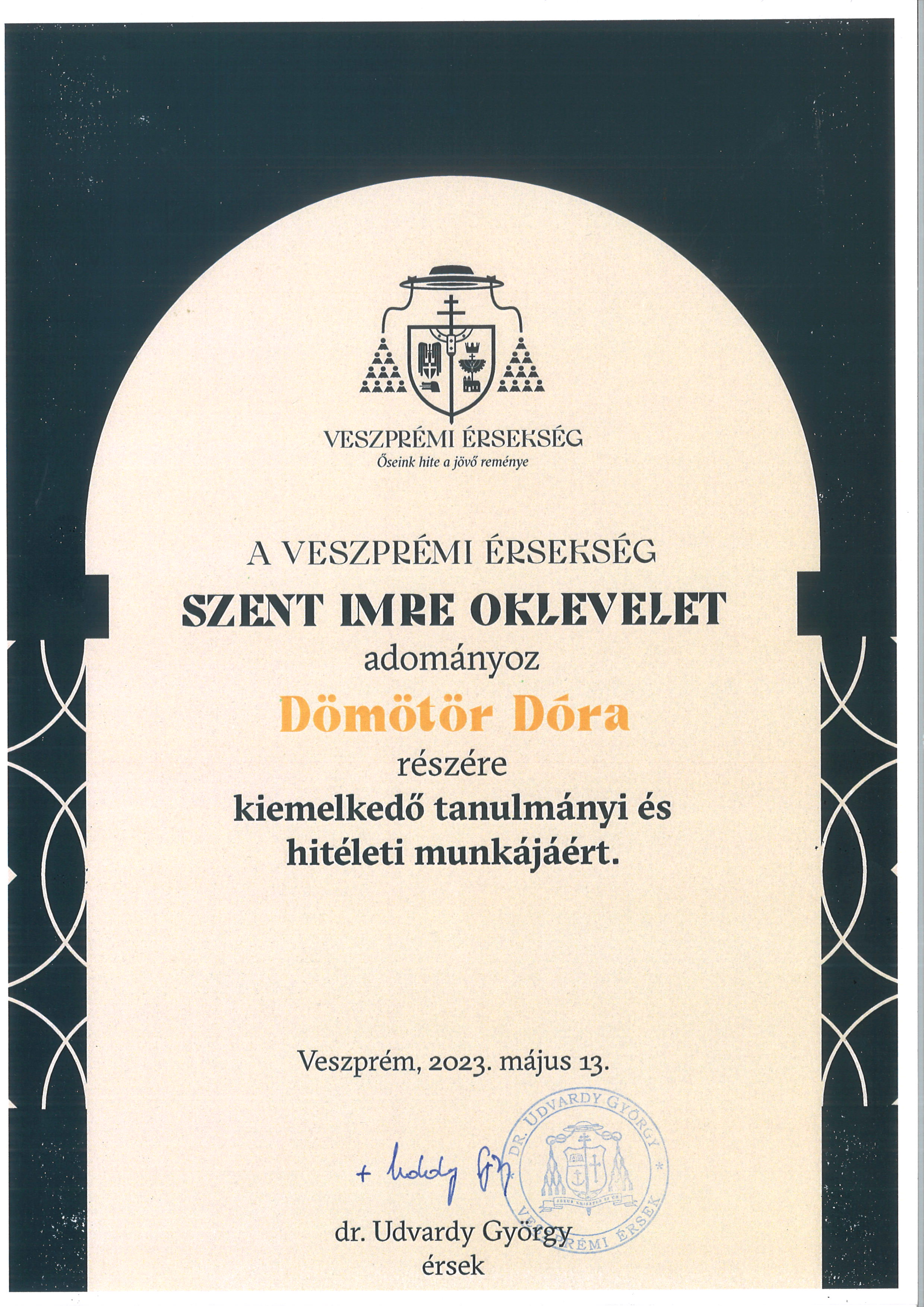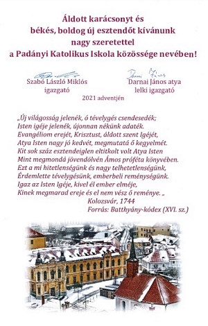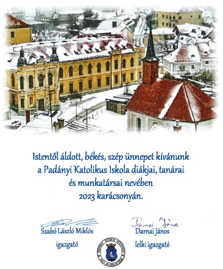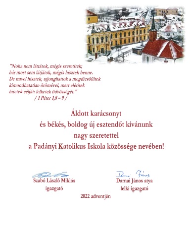 A Padányi Katolikus Iskola közössége nevében: Darnai János atya lelkiigazgató Gaál Richárd főigazgató