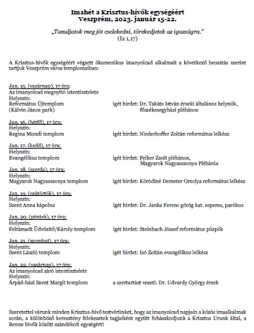 Te azért küldted el Jézust, hogy általa lépteinket a béke útjára vezesd. Tudjuk, hogy te nem úgy adod nekünk a békét, ahogy a világ adja. Tudjuk, hogy a benned való megnyugvás csak a te Országodban jön el maradéktalanul. Mégis, most a világ békéjét kérjük tőled. A te Igédre hagyatkozva könyörgünk így, hiszen te azt mondtad: Éljetek egymással egyetértésben és békében. Szorongattatott helyzetünkben ma különösen Ukrajna békéjét kérjük tőled. Az országban élő magyar testvéreinkkel is közösséget vállalva imádkozunk a megnyugvás és a kölcsönös elfogadás lelkéért. Az ember szívének vágya az élet és a béke. Lelkünk legmélyéből kérjük tehát a szív, a családok, a közösségek és a népek békéjét. Minden bűnünk ellenére add meg nekünk a kiengesztelődés kegyelmét. Jézus, a Béke Fejedelme által, a Szentlélekben imádkozva kérjük ezt Tőled, Atyánktól, aki élsz és uralkodol mindörökkön-örökké. Ámen.