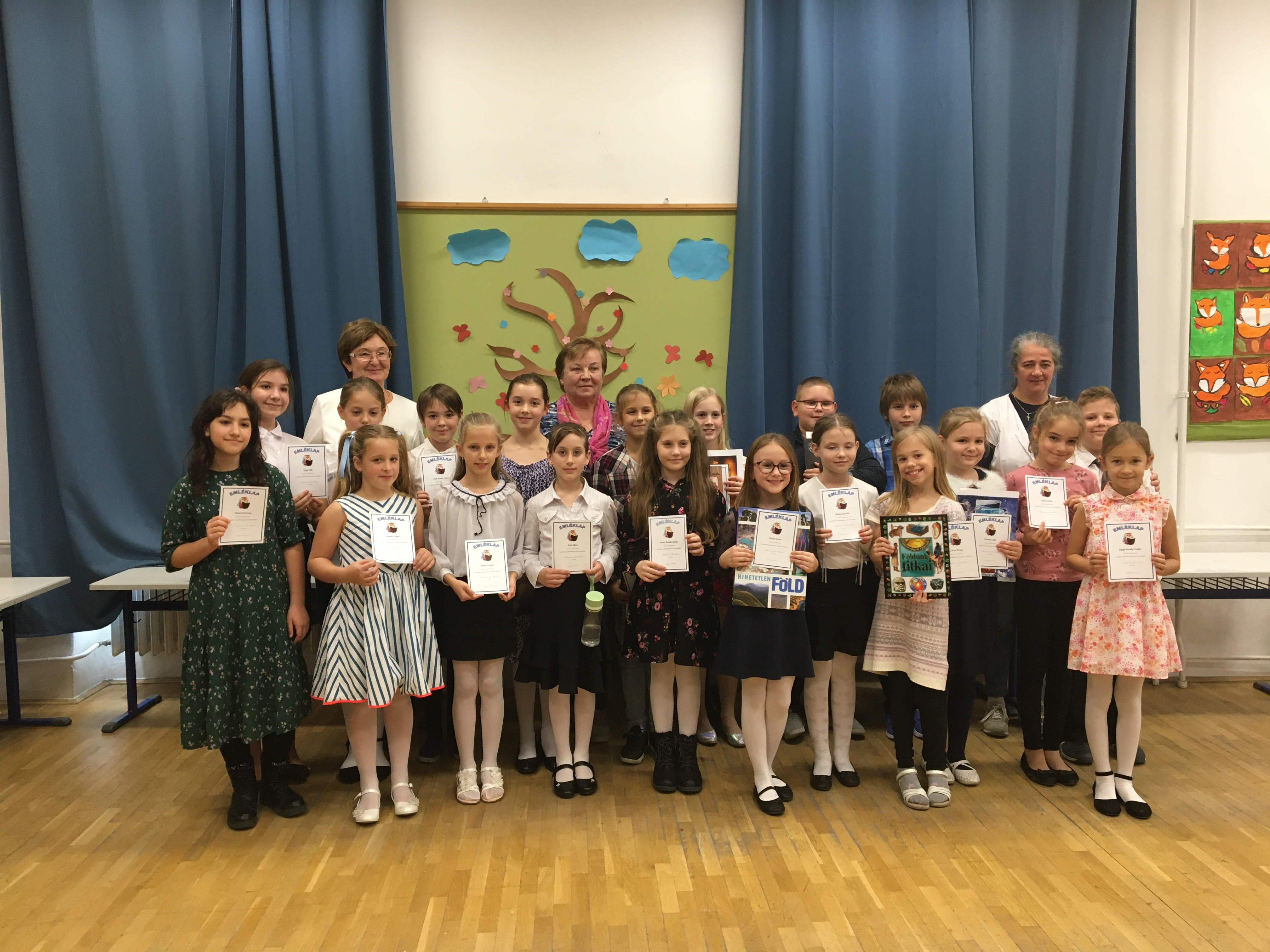 2025. május 13-án került megrendezésre 1. - 2. évfolyamos kisdiákjaink számára a versmondó verseny. 20 tanuló izgatottan készült a megmérettetésre 1-1 szabadon választott költeménnyel. Állatokról, családról, természetről, hitről is csodálatos verseket hallhattunk. Minden kisgyermek nagyon felkészülten, ügyesen és bátran adta elő a versét, ezért nehéz volt a díjazottak kiválasztása. A zsűri tagjait nyugdíjas kolléganőink alkották: Gyöngyi néni (Schumacherné Hoffman Margit), Zsuzsa néni (Dr. Bertalan Gyuláné), Marika néni (Tarjányi Mária) és Erzsi néni (Barabás Lászlóné). Ezúton is köszönjük, hogy ismét eljöttek és segítették munkánkat! A szavalóverseny helyezettjei: