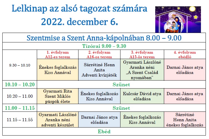 Adventi lelkinap az alsó tagozatban - szentmise YouTube elérhetősége