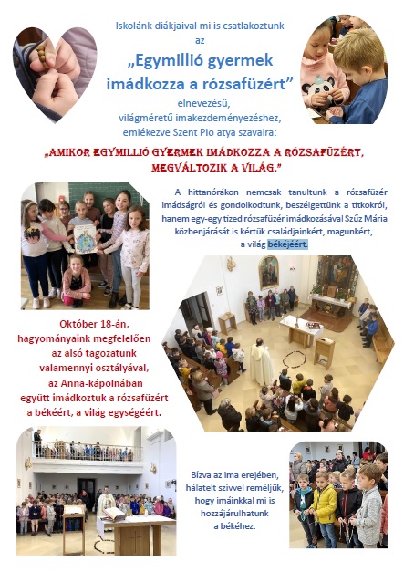 Alsó tagozatosok rózsafüzér-imádsága (2025 októbere)