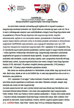 Iskolánk diákjai első alkalommal vettek részt ezen a versenyen. A versenyre való felkészülés során iskolánk énekkarai is megtanulták a korosztályok szerint kiadott Szent István énekeket. Így nemcsak a versenyzők, hanem mindenki gazdagodott ezzel a csodálatos zenei anyaggal. Igyekeztünk minden kategóriában indítani versenyzőt, akik nagyon szépen szerepeltek, és az alábbi eredményeket érték el. Szeretettel gratulálunk nekik. Felkészítő tanárok: Zsilinszky Cecília és Hutvágner Erika