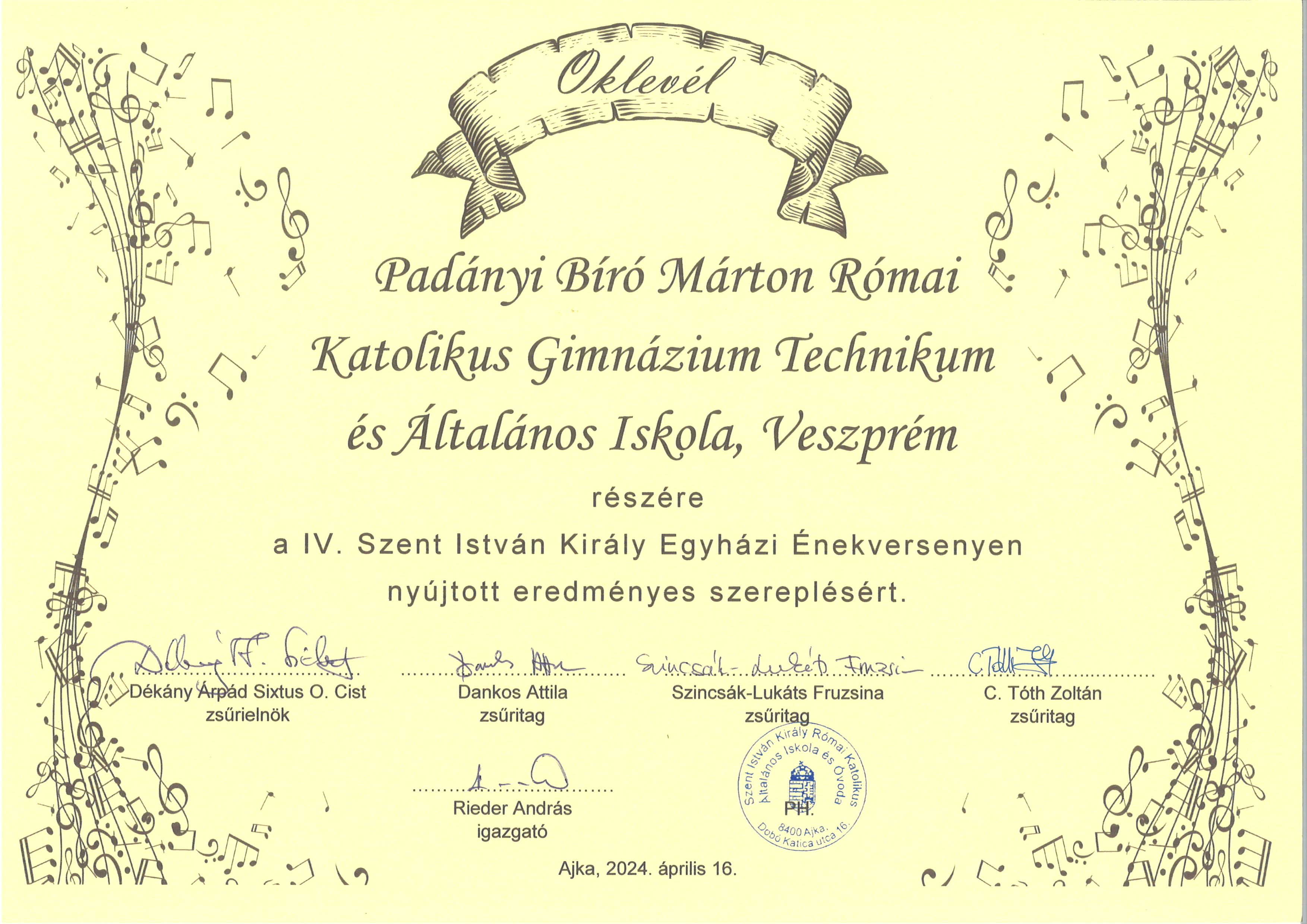 Szent István Énekverseny Ajka 2024. április 16. kedd 10 óra