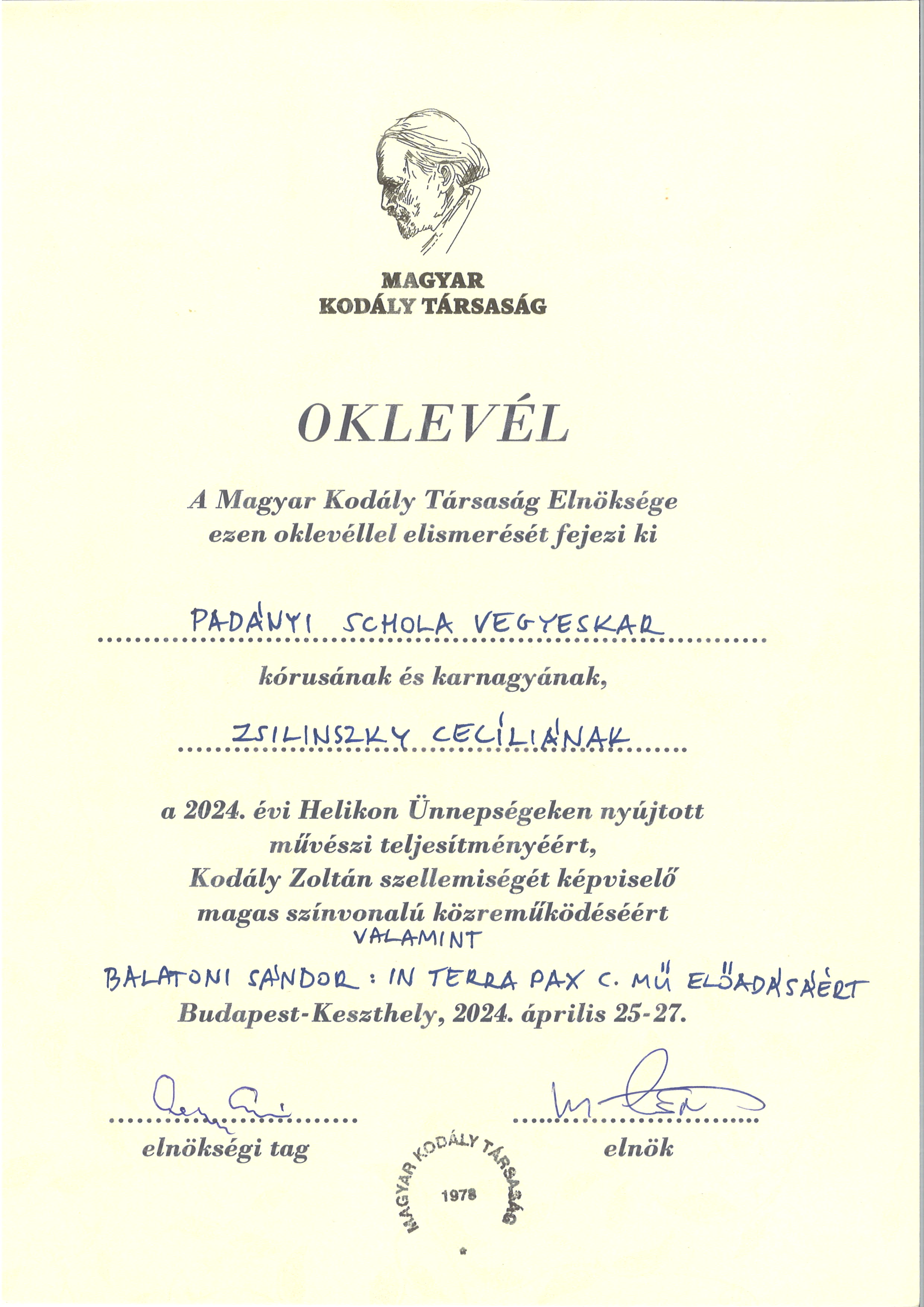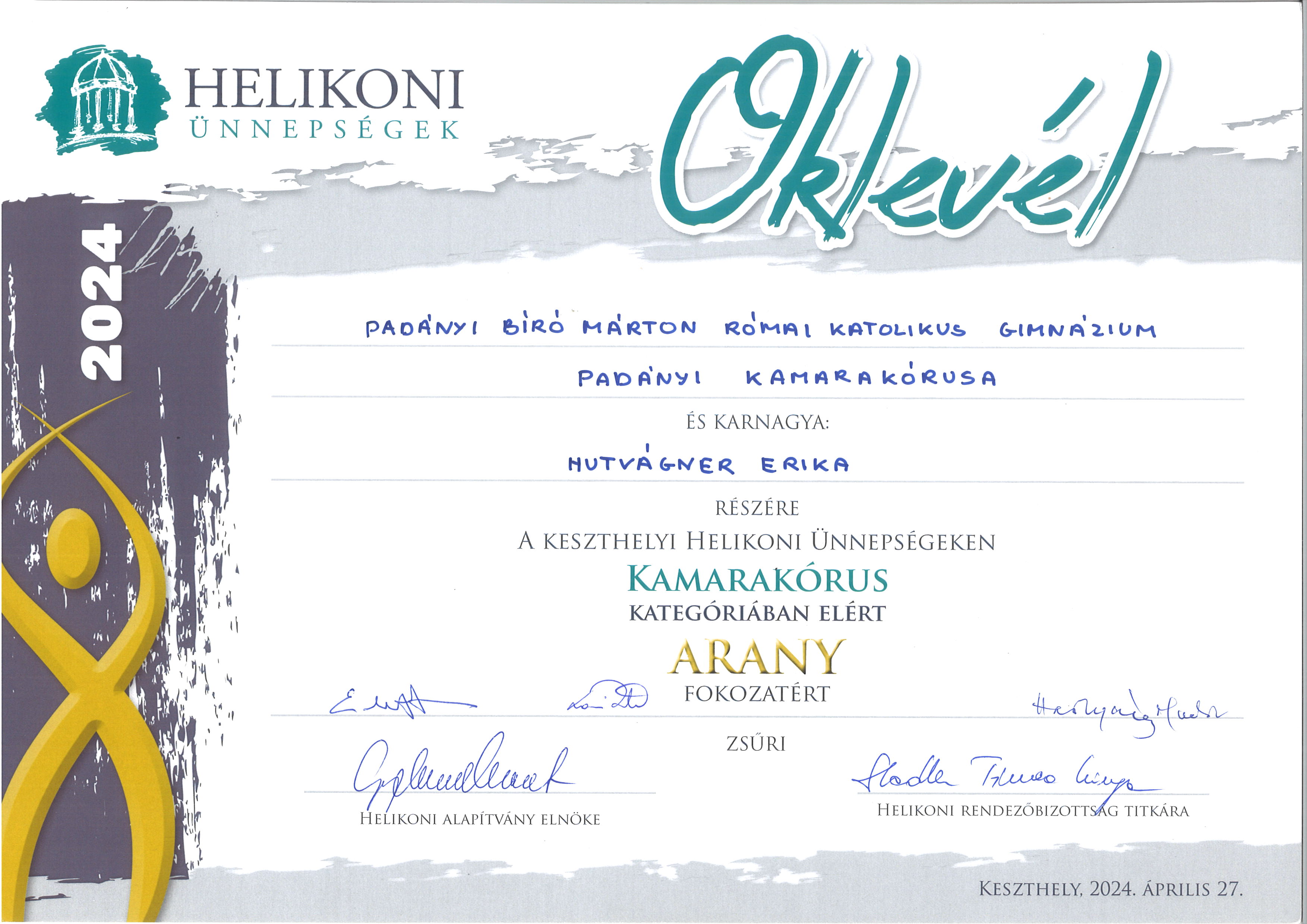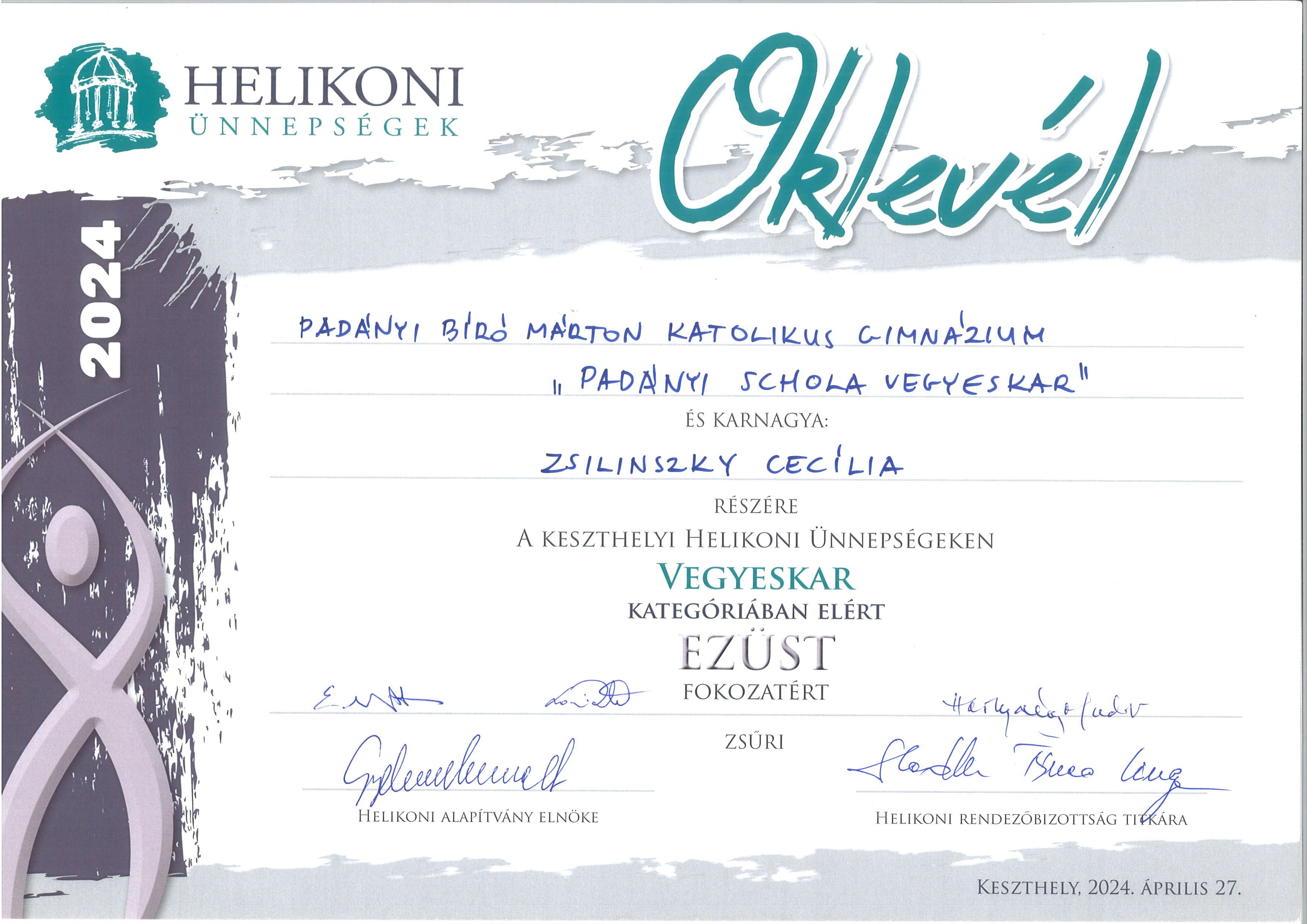 Padányi Kamarakórus (9-12. évfolyam) - ezüst minősítés (felkészítő tanár Hutvágner Erika)