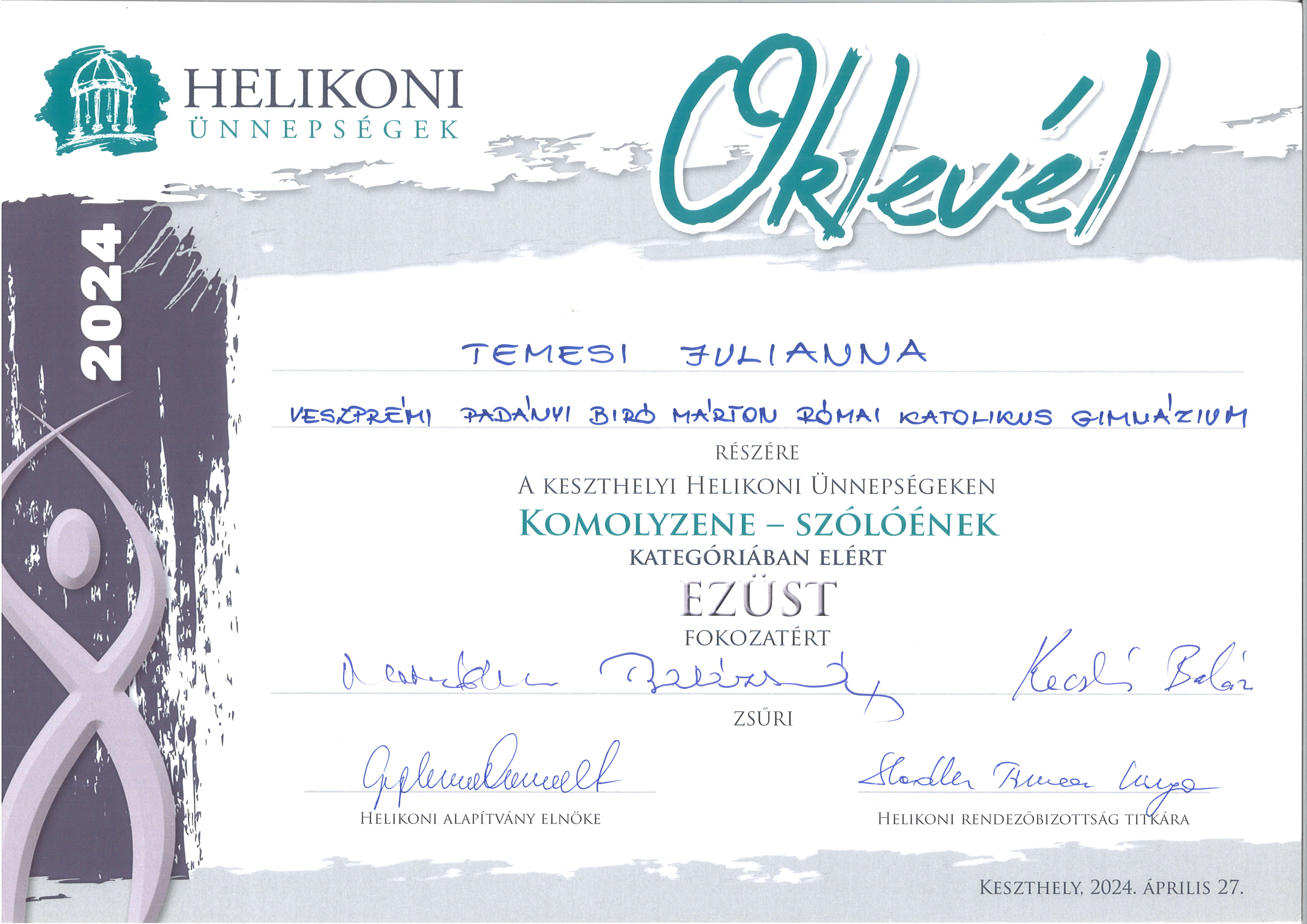 Tanulóink eredményei az idei Helikoni Ünnepségeken és más zenei versenyeken (2024 tavasza)
