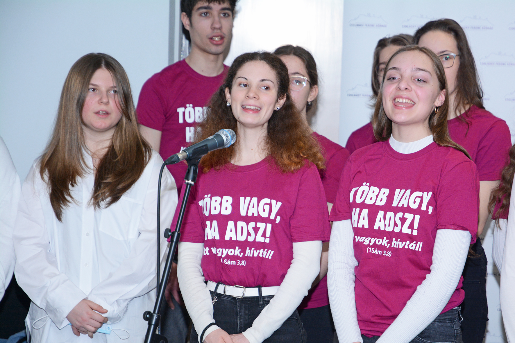 Iskolánk kórusa nagy örömmel fogadta a meghívást a magyar ápolók napja alkalmából megrendezett díjátadóra a veszprémi Cholnoky Ferenc Kórházba.Az ünnepség Kossuth Zsuzsanna emlékét idézi, és példaként állítja elénk az egészségügyi dolgozókat, ápolókat, asszisztenseket.Műsorunkkal igyekeztünk megerősíteni a hivatásukban elkötelezetteket. Elsőként a "Meghívtál, hogy vízre lépjek" kezdetű ifjúsági éneket énekeltük, mely arra buzdít bennünket, hogy a feladatunkra kapott meghívást ne utasítsuk vissza, és minden nehézségben kapaszkodjunk a Teremtőbe. József Attila Rejtelmek című megzenésített versével folytattunk a gondolatot. A meghívás magában hordozza a hűséget, amibe "belebújtatott" bennünket az Isten szeretettel és odafigyeléssel. Végül a Képzelt Riport egy amerikai popfesztiválról című musical betétdalát énekeltük el. "Arra születtünk, hogy tiszta legyen még a szívünk, s játszunk még tovább" Gitáron: Papp Tamás Kahon: Tiszttartó Márton Felkészítő tanár: Zsilinszky Cecília