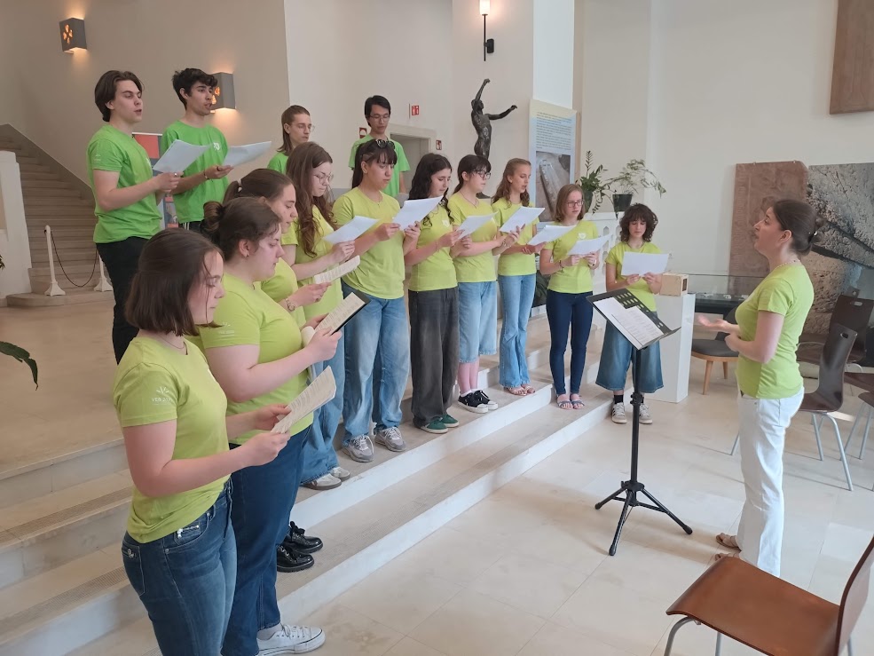 Az egyházzene védőszentjének, Szent Cecíliának napjához kapcsolódóan idén is megrendezésre került főegyházmegyénk iskoláinak kórustalálkozója Várpalotán. A jó hangulatú találkozón négy katolikus iskola kórusa vett részt, akik Várpalotáról, Tihanyból, Ajkáról és Veszprémből érkeztek. A Veszprémi Érsekség iskoláinak gyermekkarai a várpalotai Nagyboldogasszony templomban gyűltek össze szentmisére 2025. november 21-én. Az énekkarok szép liturgikus énekes szolgálatát követően a kórusok koncertet adtak a templomban. Iskolánkat a felső tagozatos diákokból álló Padányi Gyermekkar képviselte Hutvágner Erika kórusvezetővel. A padányisok Szent Márton napi dalcsokrot és Taize-i énekeket énekeltek, utóbbit Gyarmati László gitárkíséretével. A zenei áhitatot követően a diákok látogatást tettek a Trianon Múzeumban, ahol múzeumpedagógiai foglalkozás és tárlatvezetés segítségével bepillantást nyerhettek a magyar történelem egyik nehéz időszakába.